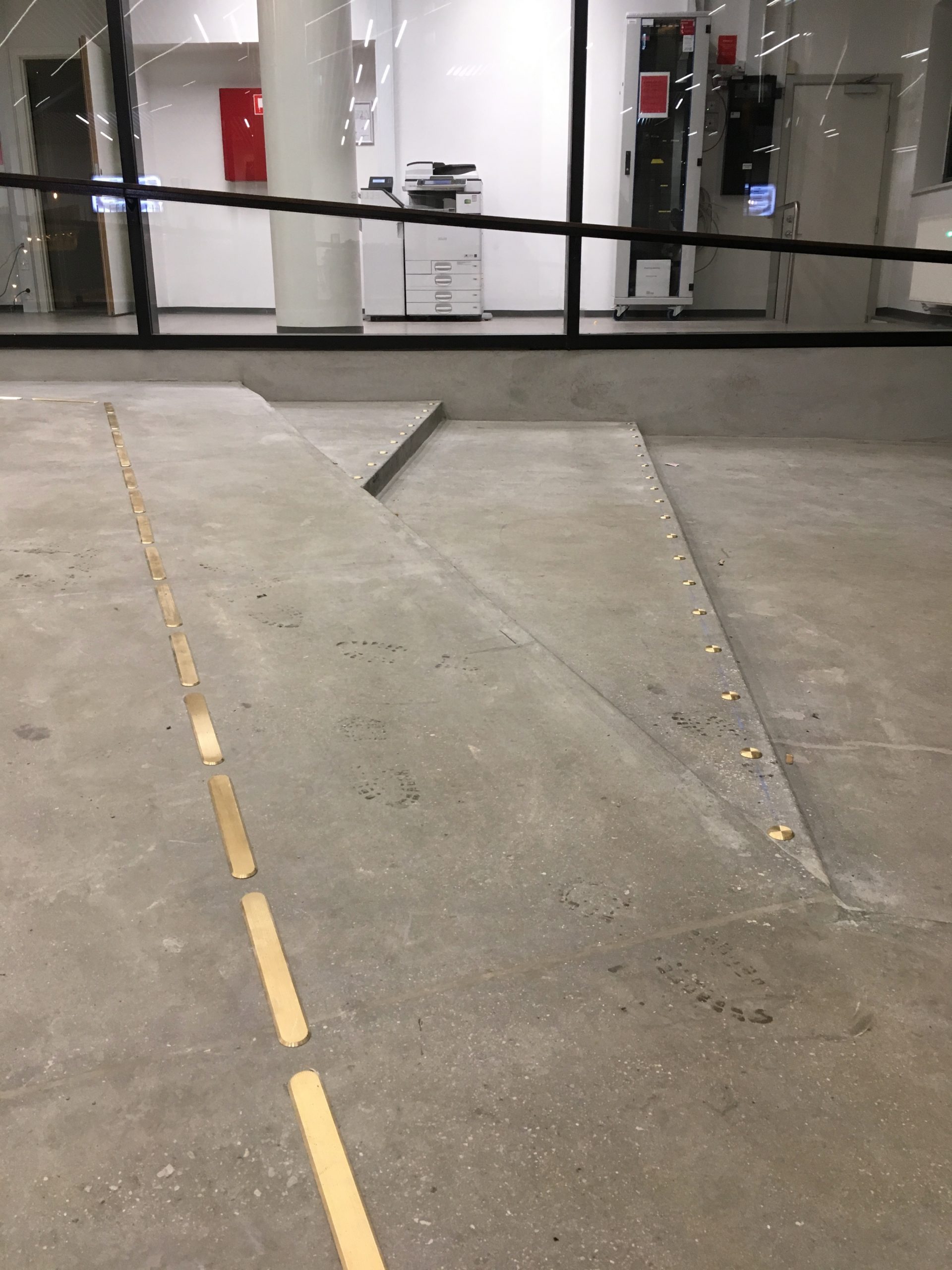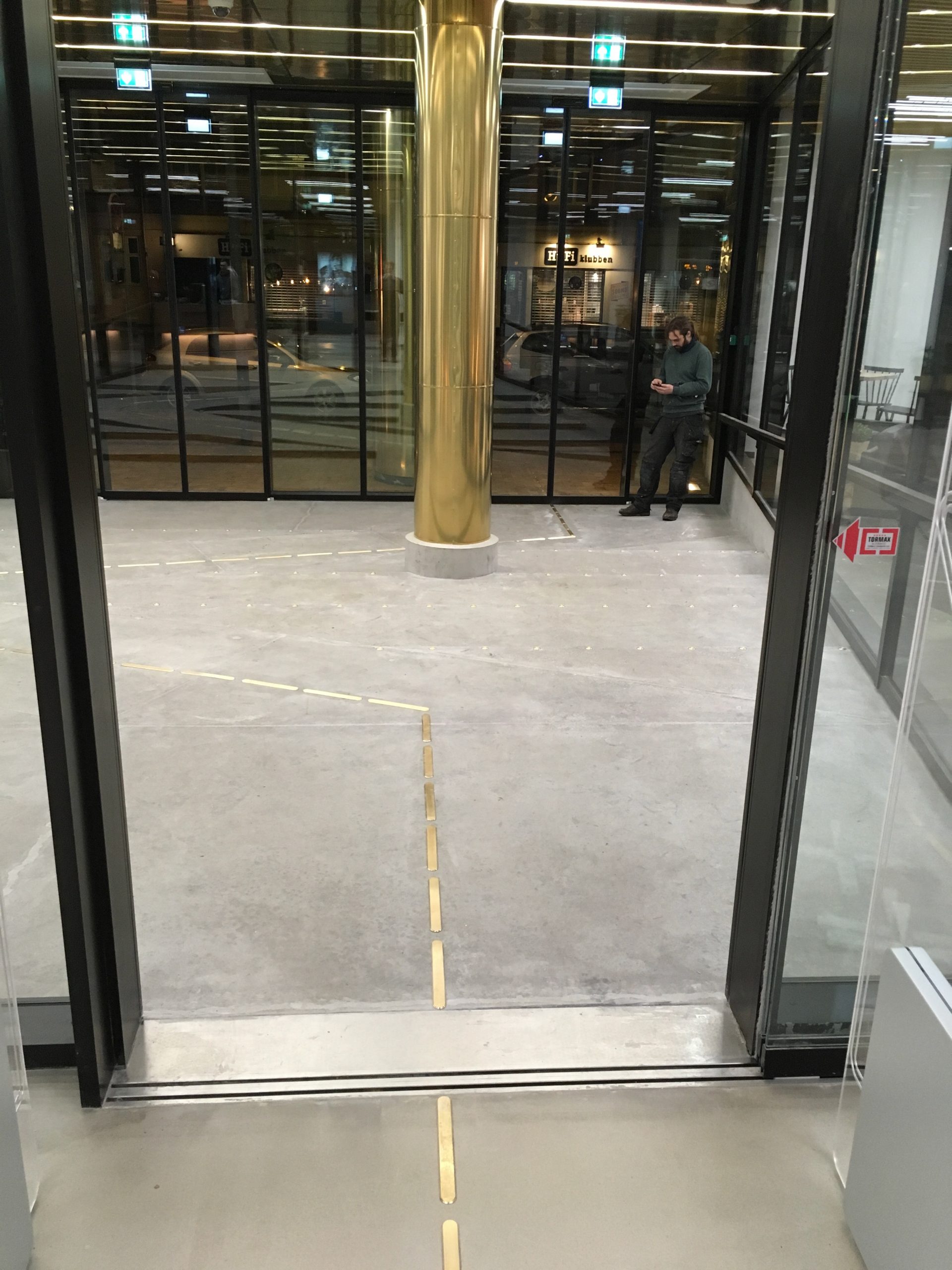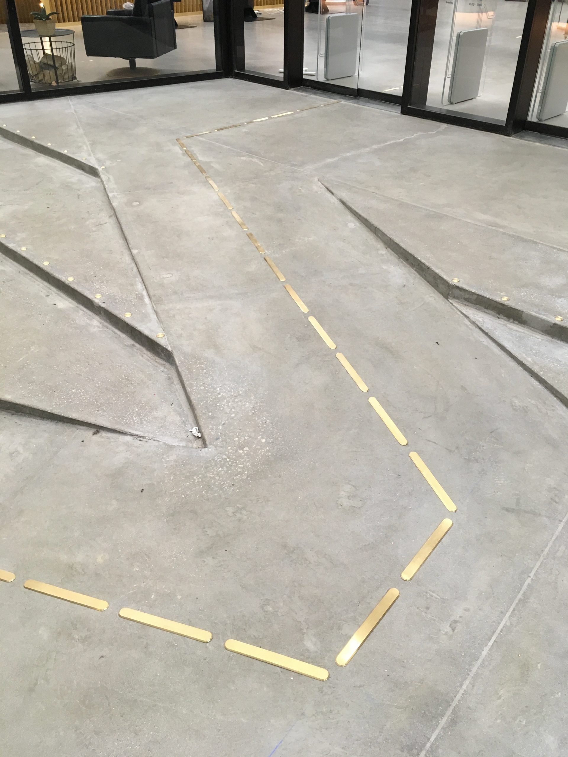 Ledelinjerne til denne opgave er udført i messing som spiller rigtig godt sammen med bygningens design.
